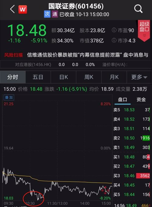 10月13日复牌,两家券商表现却各有不同。国联证券在集合竞价阶段迅速逼近跌停,随后跌幅略有收窄。截止收盘,国联证券下跌5.91%,盘中一度下跌超8%。