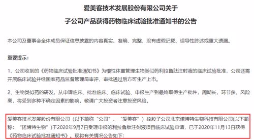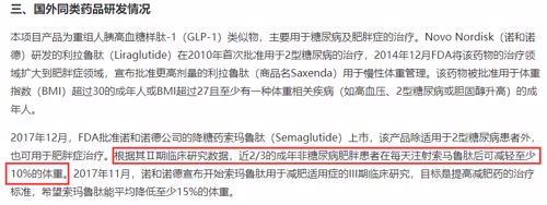 根据公告介绍,国外的同类产品可以帮助肥胖症患者减少至少10%的体重。
