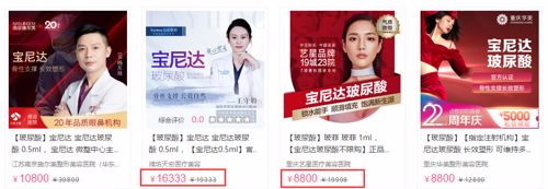 而在新氧平台上,打宝尼达产品的价格从8800元到1.6万元之间不等。中间的暴利可想而知。
