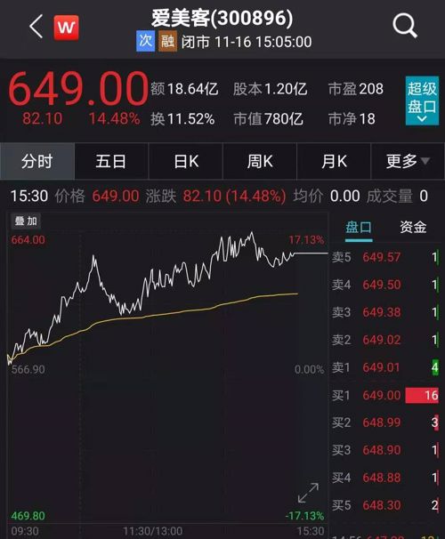 16日,爱美客午后一路上涨,一度暴涨超17%,截至收盘,爱美客上涨14.48%