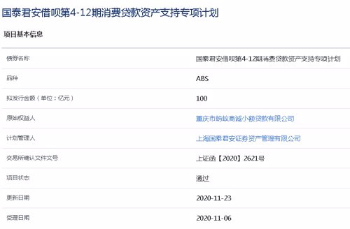 蚂蚁旗下小额贷公司200亿ABS通过