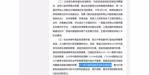 根据成渝地区双城经济圈建设国家战略的部署,下一步川渝两地将共同申办奥运会,着力打造具有成渝独特印记和文化特色的奥运会,提升成都、重庆体育的国际影响力和全球竞争力。