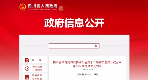 近日,四川省政府网站公开《四川省体育局对政协四川省第十二届委员会第三次会议第0364号提案答复的函》。