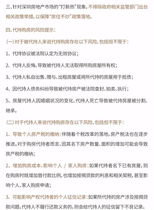 对此,11月30日,深圳市住房和建设局局长、党组书记张学凡在接受媒体采访时回应称,政府主管部门高度重视,对媒体反映的代持炒房等情况,正在调查处理中,一旦发现存在违规行为,将依法依规严肃处理。