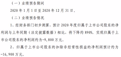 为什么说是“妖股”?1月12日晚间,宜宾纸业发布业绩预亏公告,预计2020年归属于上市公司股东的净利润约为亏损9800万元,预计2020年扣除非经常性损益的净利润约为亏损1.69亿元。