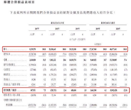但是公司盈利情况却不好,2017-2019年,快手的净亏损分别为200.45亿元、124.29亿元、196.52亿元,到2020年9月的净亏损为973.71亿元。撇除以股份为基础的薪酬开支及可转换可赎回优先股公允价值变动,2017-2019年经调整利润净额分别为7.74亿元、2.05亿元、10亿元,但是,2020年前9个月,由于推广、人才引进及研发基地等方面的投入,快手录得经调整净利亏损为72.4亿元人民币。