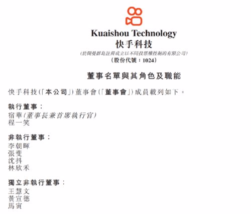 在上市前,快手在公布了最新的董事名单与其角色及职能。值得注意的是,原京东集团CFO黄宣德、原美团联合创始人王慧文,成为快手新的独立非执行董事。公开资料显示,黄宣德在担任京东集团首席财务官一职近7年时间,在2020年9月16日正式退休。而美团的王慧文在2020年12月18日宣布正式退休,他原来是美团的二号人物。