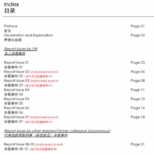 大家好,我是YW。YW是我在德勤的代号,已经跟随了我四年多。但是这个名字已经有两年多没有出现在德勤任何项目的底稿签名中了,而很快,它也将消失在德勤的系统中。以这样的方式和大家见面,我很抱歉。作出公布这份举报材料的决定,我想了很久,因为它的出现,会影响到公司里某些人的名誉、利益、甚至前途。但它的出现,也一定会帮助更多的人。