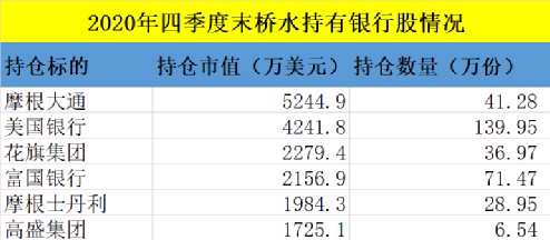 桥水买进摩根大通等多只银行股
