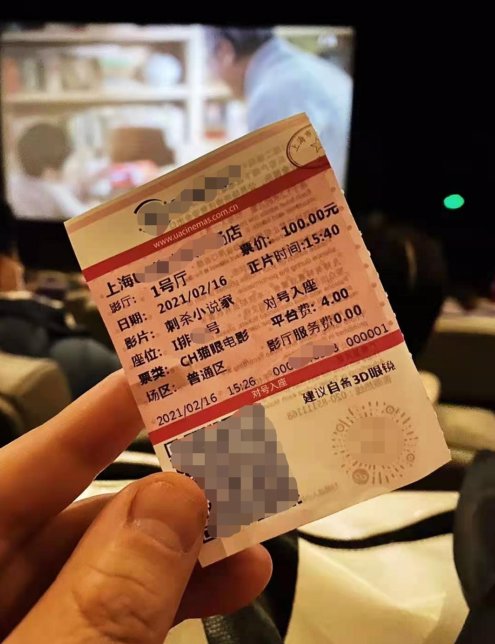 还有小伙伴晒出的上海某电影院的电影票,《刺杀小说家》单场票价高达100元,自备3D眼镜。有网友吐槽,这样的电影票价,跟往年不能比,真的是看了个寂寞。