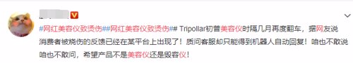 不少网友在多个平台反映,在使用初普TriPollar美容仪时被烫伤了……