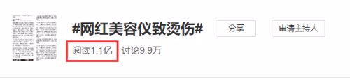 近日,#网红美容仪致烫伤#的话题冲上热搜。截至发稿,该话题阅读已经突破1亿次。