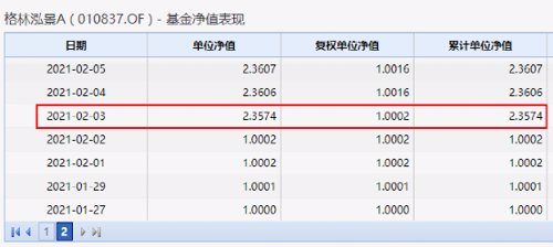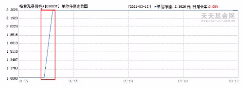 比如,今年1月27日成立的格林泓景债券基金,在2月3日当天,基金净值由上一日的1.0002元暴涨至2.3574元,单日涨幅超过135%。