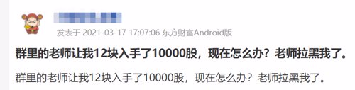 一些跟风买入的散户直接懵逼。有人买了30万,有人12块入手了10000股,而且还被老师拉黑