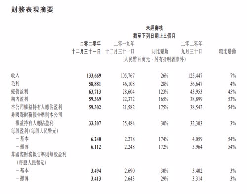 -经营盈利为人民币637.13亿元(97.65亿美元),同比增长123%;经营利润率由去年同期的27%上升至48%。