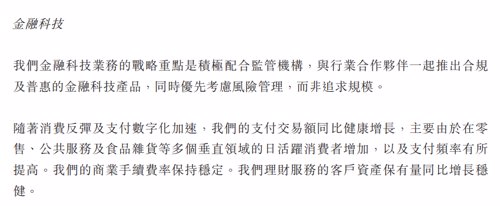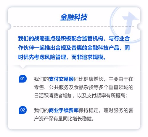 腾讯表示,公司金融科技业务的战略重点是积极配合监管机构,与行业合作伙伴一起推出合规及普惠的金融科技产品,同时优先考虑风险管理,而非追求规模。