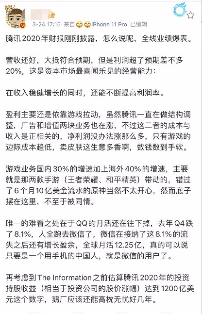股王腾讯今晚发布2020年的年报,基金看了一圈,大V们对此的评价:业绩爆表!