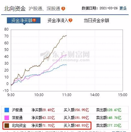 资金面也显得在好转。Shibor全线下行,北上资金今日上午净买入72亿元,净买入额一路上扬。