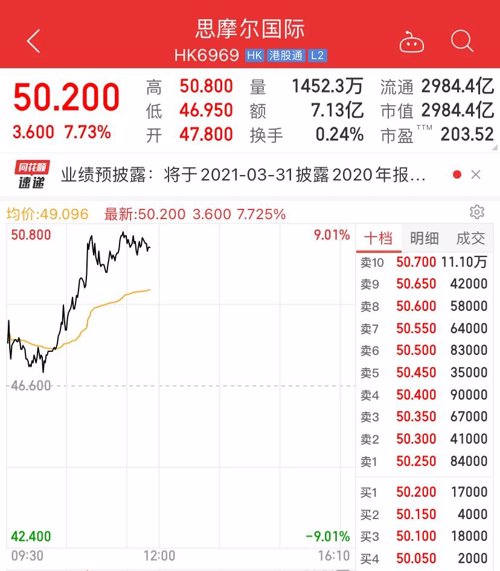 前几天因为电子烟政策暴跌的思摩尔国际,今日有所反弹,上午收盘前涨超7%。