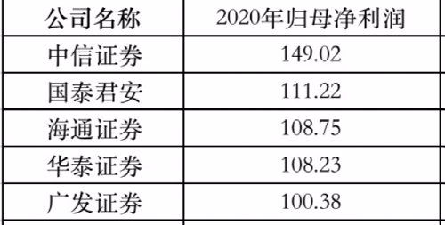 5家券商归母净利润超百亿