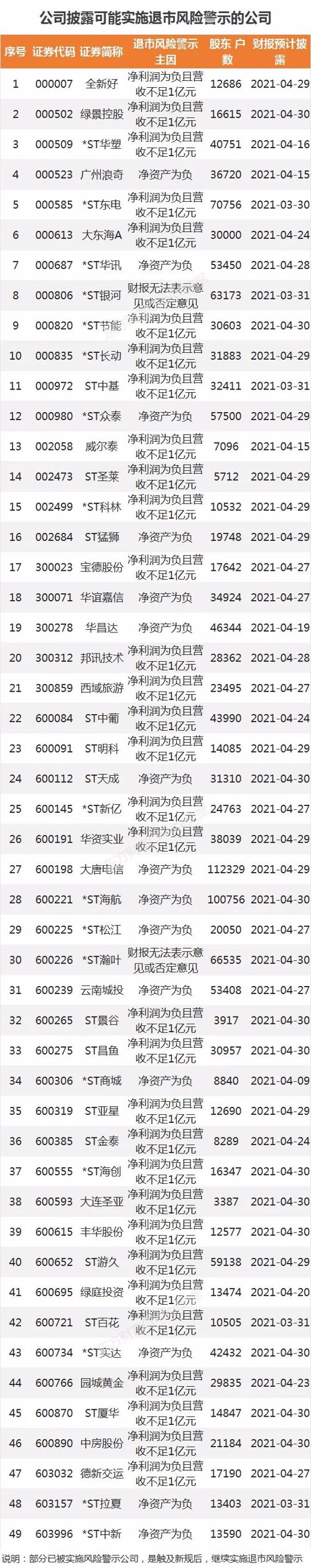 49公司预将被实施退市风险警示