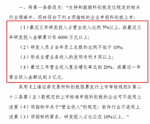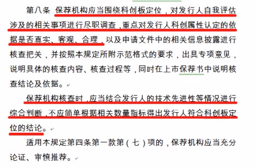 四是明确审核中按照“实质重于形式”原则,综合判断企业科创属性,充分发挥科技创新咨询委员会咨询作用。对于《暂行规定》修订前已申报企业的科创属性指标要求,仍按其申报时的相关规定执行。