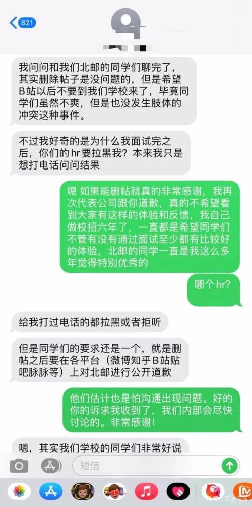 针对面试同学称HR拉黑联系方式并要求删帖,B站在回应中予以否认。B站表示,公司向所有北邮师生致歉,将对本次招聘会的HR负责人和当事面试员进行严厉的批评和处罚。