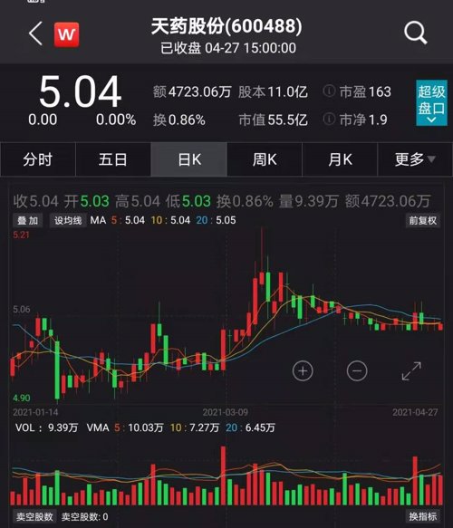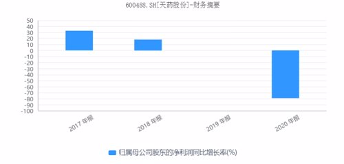 4月23日,天药股份正式发布年报,2020年,天药股份实现营业收入31.17亿元,同比下降6.31%;归属于上市公司股东的净利润为3397.88万元,同比下降79%。
