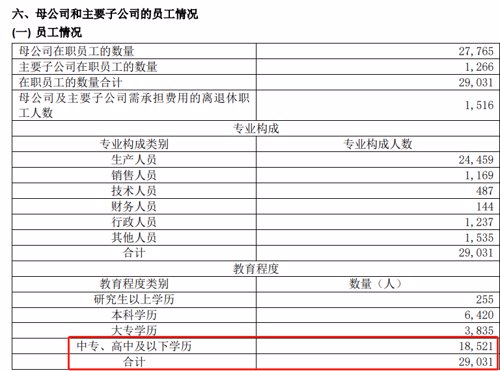 从2020年茅台年报显示,茅台一共有员工2.9万人,其中中专、高中及以下学历的员工数达到1.85万人,占比近64%。而本科及以上学历的6675人,占比23%。