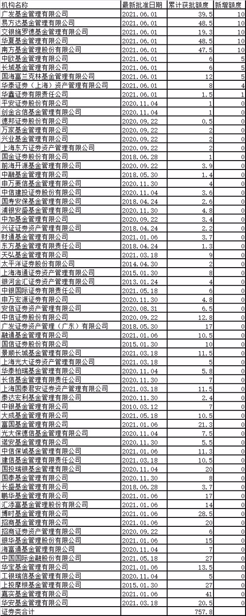 最新一期《合格境内机构投资者(QDII)投资额度审批情况表》显示,6月2日,外汇局启动今年第4轮QDII额度发放, 向17家机构发放QDII额度103亿美元,其中、易方达、广发、华夏、南方等8家基金公司合计新增65亿美元QDII额度。