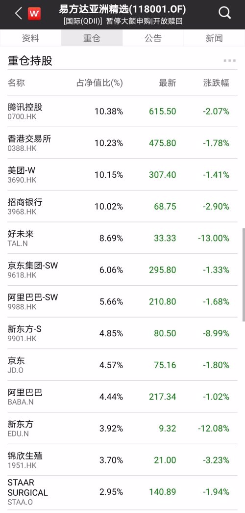 就在5月末,易方达亚洲精选曾因外汇额度不足一度限制大额申购。该基金在5月27日发布的暂停大额申购公告中表示,因外汇额度限制,从5 月 27 日起暂停在全部销售机构的大额申购、大额转换转入业务,单日单个基金账户累计申购(含定期定额投资及转换转入,下同)金额不超过 1 万元。