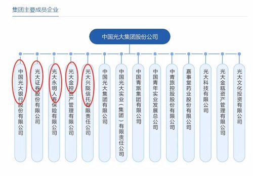 光大集团的组织架构当中,包括有光大银行、光大证券、光大永明人寿、光大金控资产、光大兴陇信托等。已经上市的光大银行、光大证券2021年一季度末的总资产分别为5.58万亿元和2366亿元,合计为5.82万亿元。