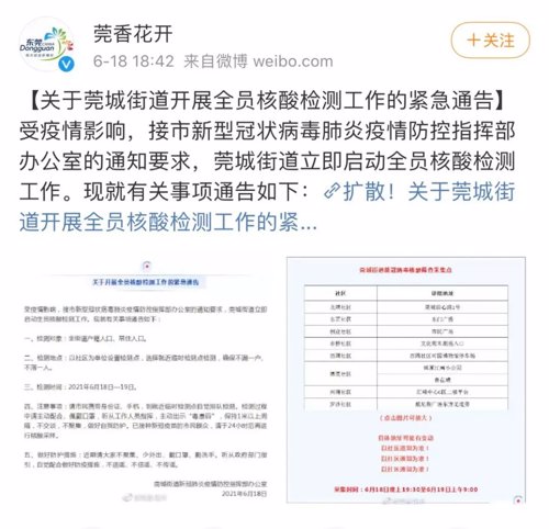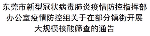 疫情防控,人人有责。为进一步做好常态化疫情防控工作,防范疫情输入风险,阻断疫情传播链条,切实保障市民健康安全,根据工作安排,决定自6月18日至6月19日上午对莞城街道、东城街道、万江街道、南城街道、麻涌镇的常住人口及临时来莞人员就地开展全员核酸筛查工作。有关事项通告如下: