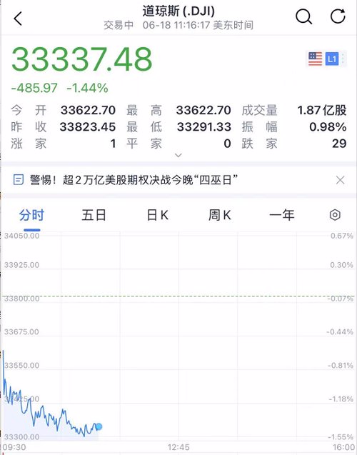 18日晚间,美股不平静。截至发稿,道琼斯指数一度跌超500点