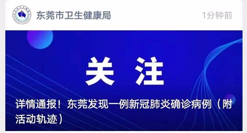 据通报,6月18日凌晨,东莞市南城街道在医疗机构发热门诊日常监测中,排查发现1例新冠肺炎核酸疑似阳性人员,后经东莞市疾控中心复核,结果阳性。
