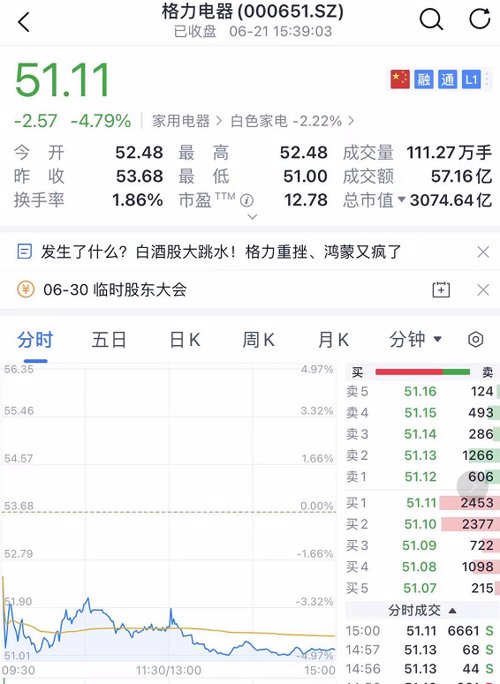 格力一度大跌5%