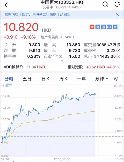 受消息影响,恒大股价暴涨了近10%