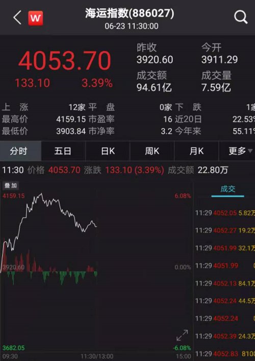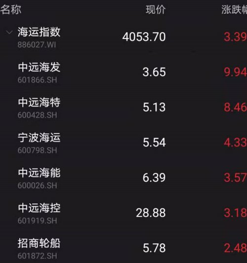 海运板块也大涨。指数一度涨超6%,截至收盘收涨3.39%。