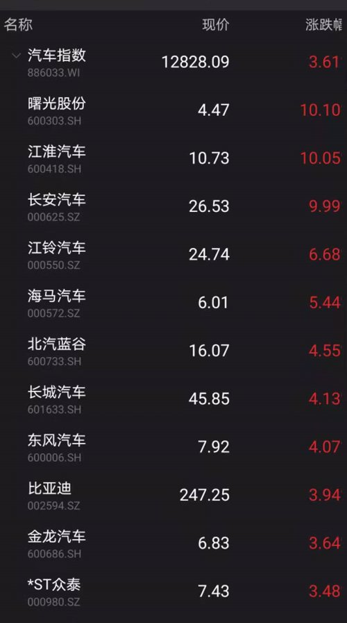 今天,涨幅靠前的板块均是和新能源汽车相关的产业链。
