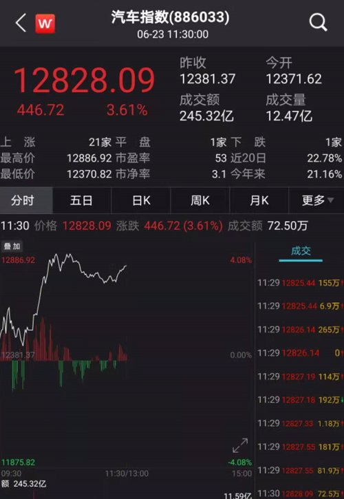 汽车指数大涨3.61%。