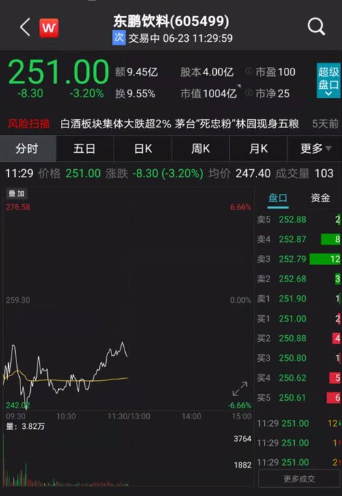 其中,“A股功能饮料第一股”东鹏饮料更是一度跌破千亿市值,最终收跌3.2%。
