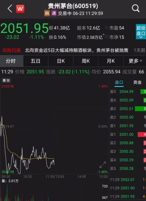 龙头股贵州茅台也跌1.11%。