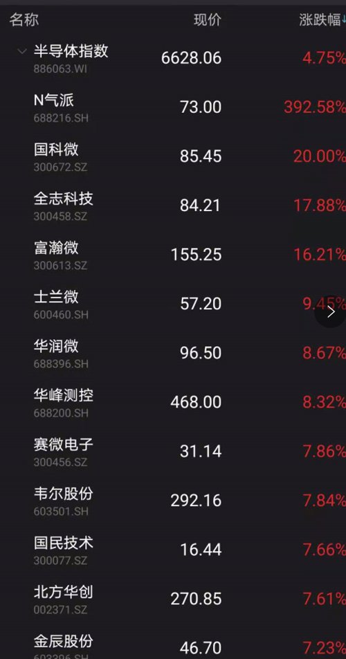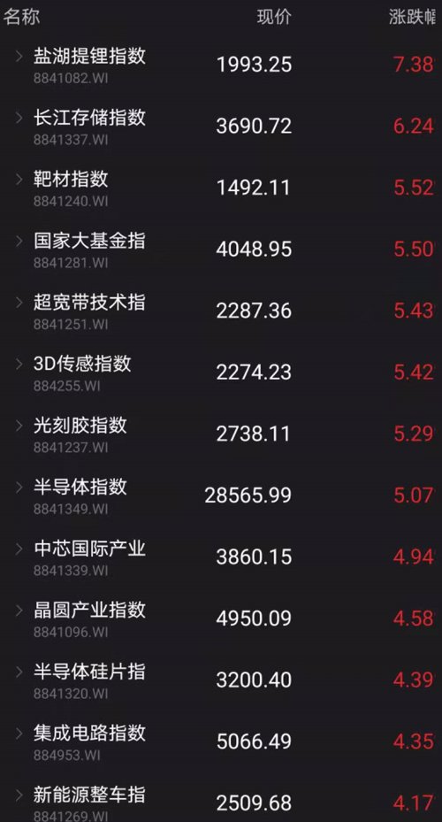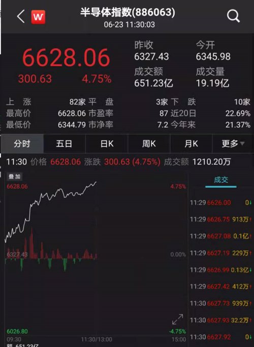 半导体指数也大涨4.75%。