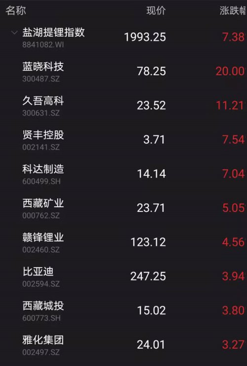 盐湖提锂暴涨7%、半导体近5%