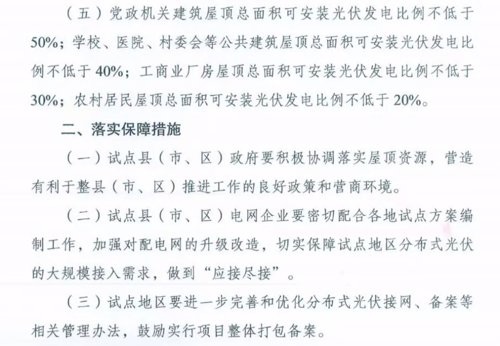 通知表示,党政机关建筑屋顶总面积可安装光伏发电比例不低于50%;学校、医院、村委会等公共建筑屋顶总面积可安装光伏发电比例不低于40%;工商业厂房屋顶总面积可安装光伏发电比例不低于30%;农村居民屋顶总面积可安装光伏发电比例不低于20%。