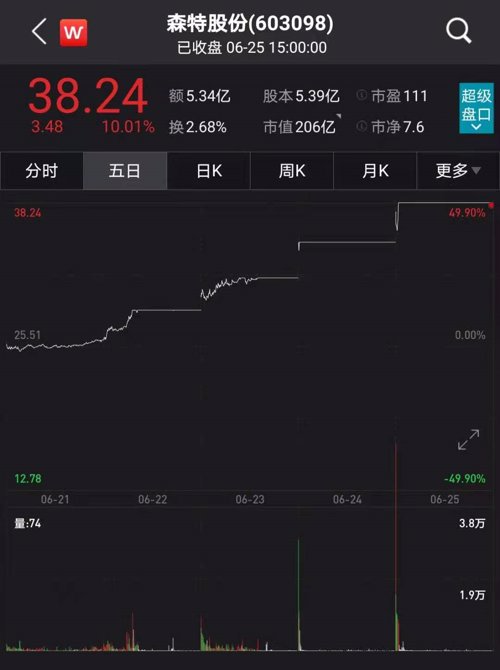 森特股份四天四涨停,股价持续暴涨,市场认为还是有隆基股份入股的因素。