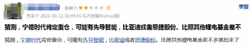 有基民比照其他重仓锂电的基金后猜测,汇安均衡优选可能重仓了宁德时代、先导智能,比亚迪或者恩捷股份。