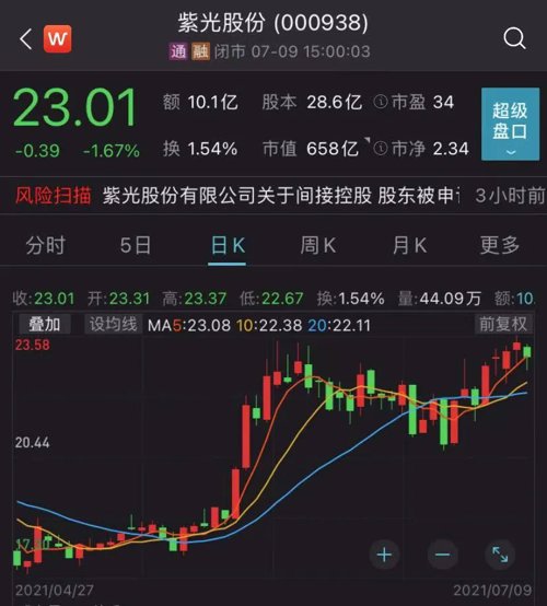 旗下千亿市值的子公司紫光国微也发布了公告。