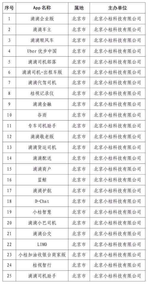 国家互联网信息办公室依据《中华人民共和国网络安全法》相关规定,通知应用商店下架上述25款App,要求相关运营者严格按照法律要求,参照国家有关标准,认真整改存在的问题,切实保障广大用户个人信息安全。各网站、平台不得为“滴滴出行”和“滴滴企业版”等上述25款已在应用商店下架的App提供访问和下载服务。