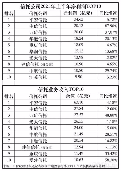 信托公司2021年上半年“成绩单”新鲜出炉。